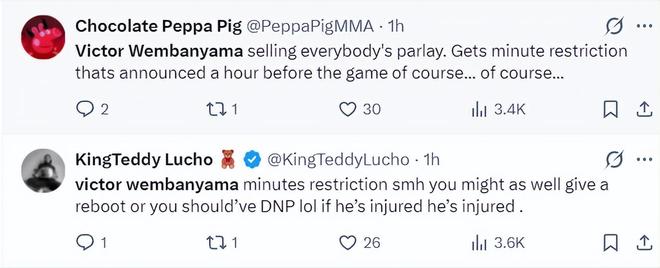 美球迷:文班亚马还是有登场限制,你们还不如直接让他伤停,如果他受伤了就让他休息不该登场。